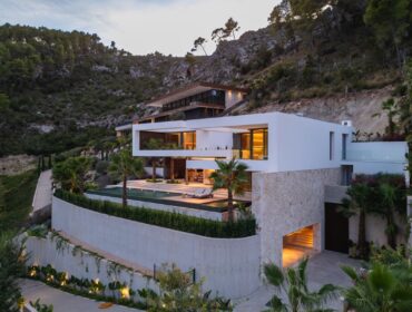 Contemporary villa in Costa d’en Blanes with panoramic sea views, four bedrooms, spa, rooftop terrace, pool and six-car garage.