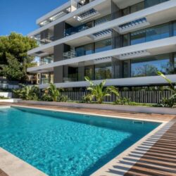 Stylish 2-bedroom penthouse in Portals Nous, Mallorca, with panoramic sea views, sunny terrace, community pool, and private garage in the exclusive Silver Point residence.