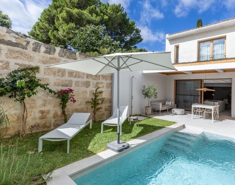 Beautifully finished townhouse in Pollença with private garden, pool, and garage — combining authentic Mallorcan character with contemporary living.