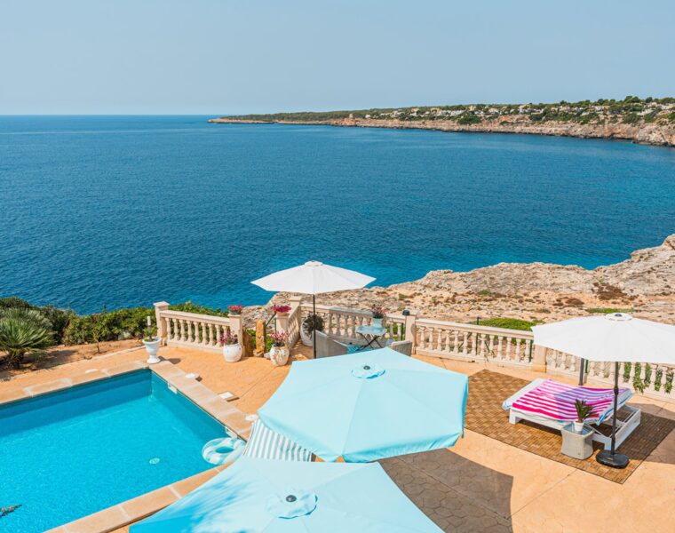 Frontline villa in Llucmajor with sweeping sea views, private pool, and bright open-plan interiors.