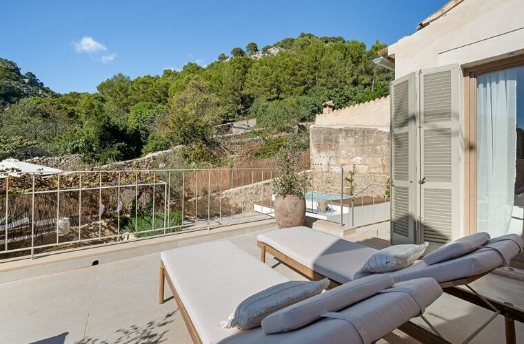 Restored three-bedroom townhouse with pool, terraces, and holiday licence in the peaceful mountain village of Caimari, Mallorca.