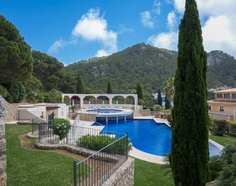 Modern two-bedroom apartment in Port d’Andratx with sea views, private terraces, shared pools and wellness facilities.