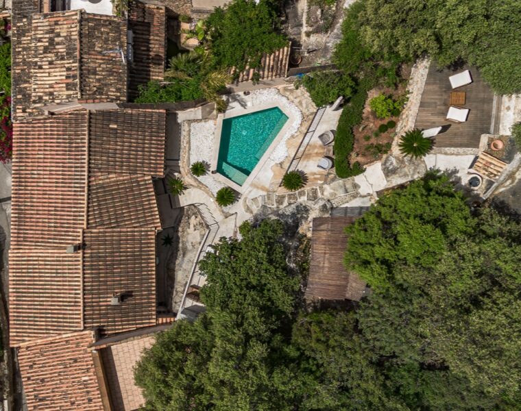Near Banyalbufar, this eight-bedroom property combines original stone architecture, rooftop terraces and open mountain views in an authentic village setting.