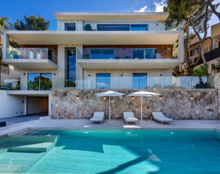 Experience modern living and serene privacy in this villa with a pool in Santa Ponsa, ready by the end of 2024.