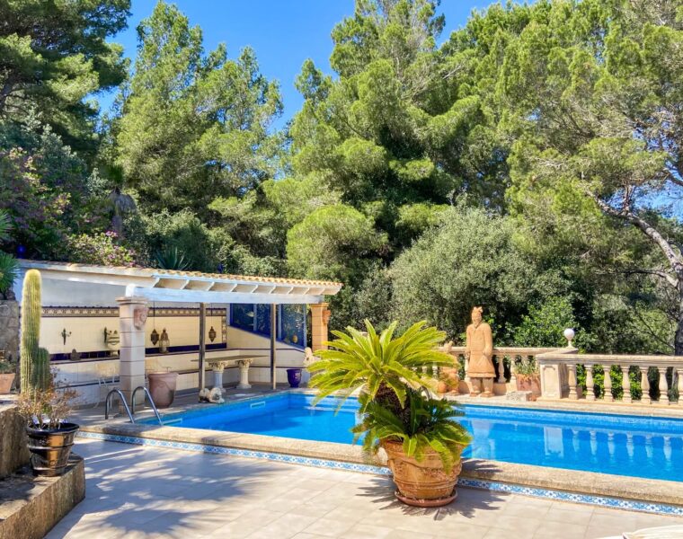 This picturesque finca near Artà, complete with a private pool and lush garden, offers a peaceful retreat in Mallorca’s stunning countryside.