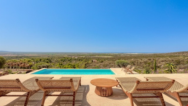 Contemporary Palma finca with 4 bedrooms, 5 bathrooms, private saltwater pool, and breathtaking sea views — a peaceful retreat on Mallorca.
