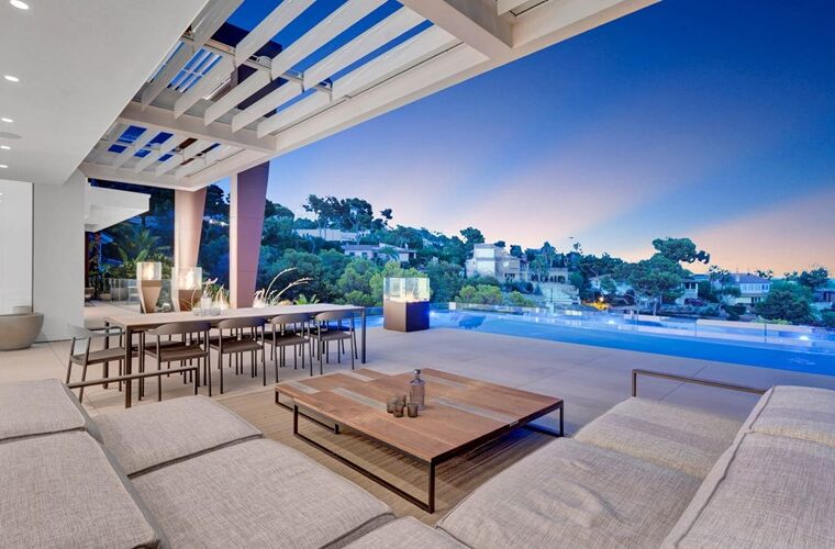 Contemporary villa in Costa d’en Blanes with panoramic sea views, four bedrooms, spa, rooftop terrace, pool and six-car garage.